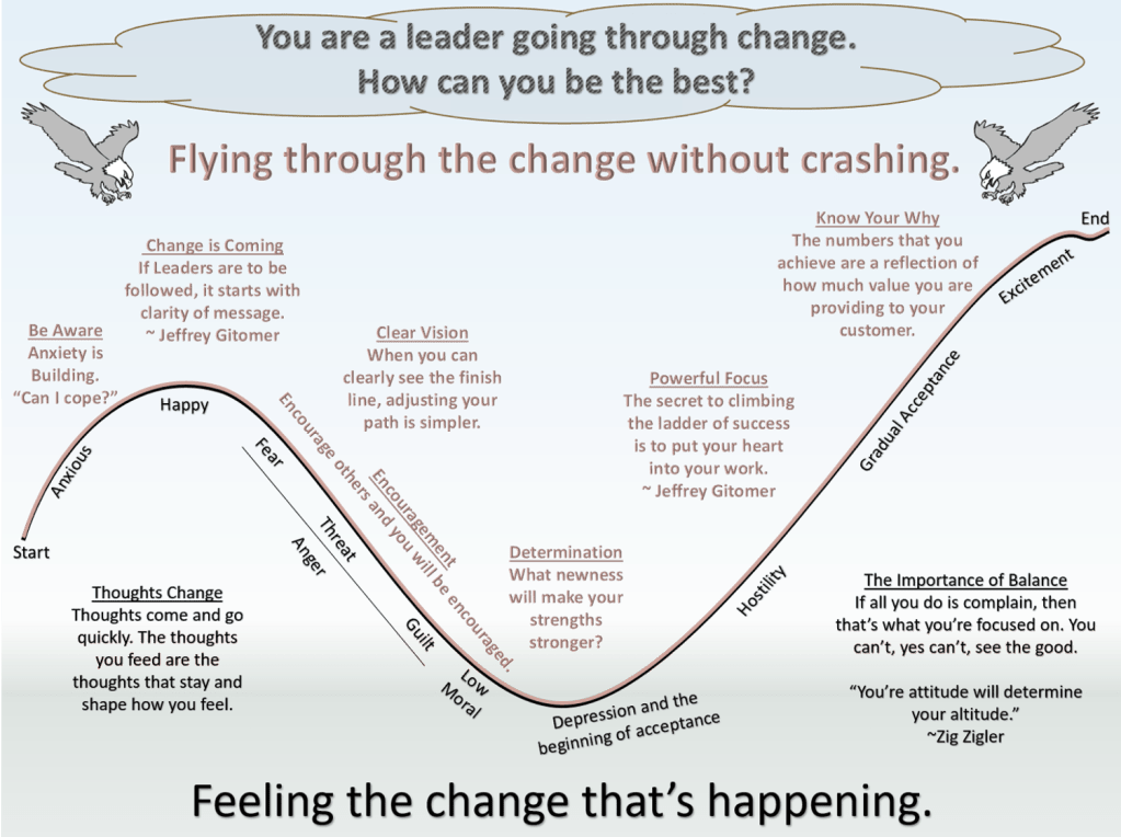 - The following graphic was developed as a discussion tool for managers. This graphic aided managers in handling the significant changes their people had to endure. This was essential for this release.