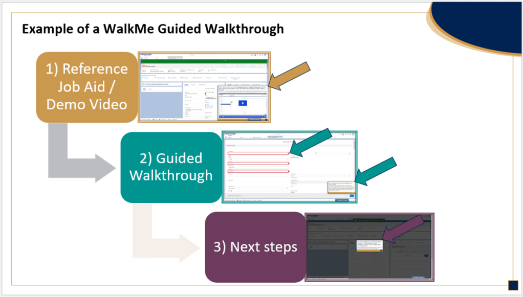 - People are learning how to do the tasks whiile they are IN the actual application.