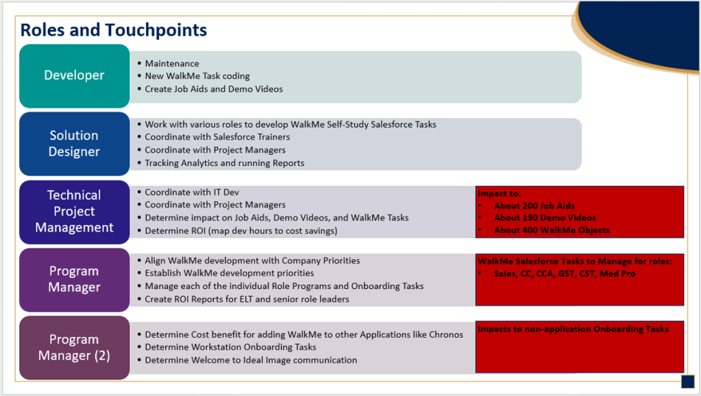 - Create new training resources (Job Aids, Demo Videos, etc.).